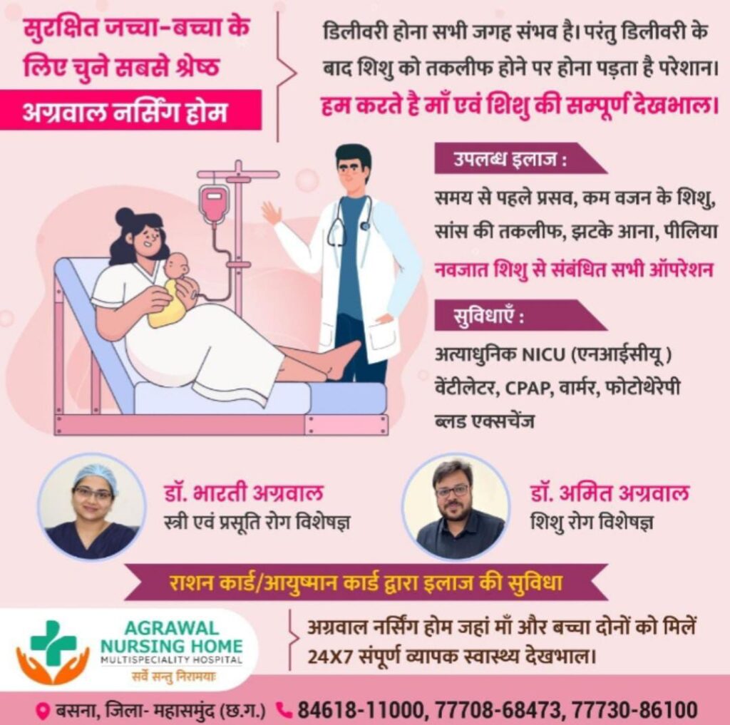 सरायपाली.अग्रवाल नर्सिंग होम में 29 अक्टूबर से 01 नवंबर तकनिःशुल्क ऑपरेशन, जांच, परामर्श शिविर रखा गया है जिसमें विभिन्न प्रकार के लेज़र एवं दूरबीन पद्धति से ऑपरेशन उपलब्ध