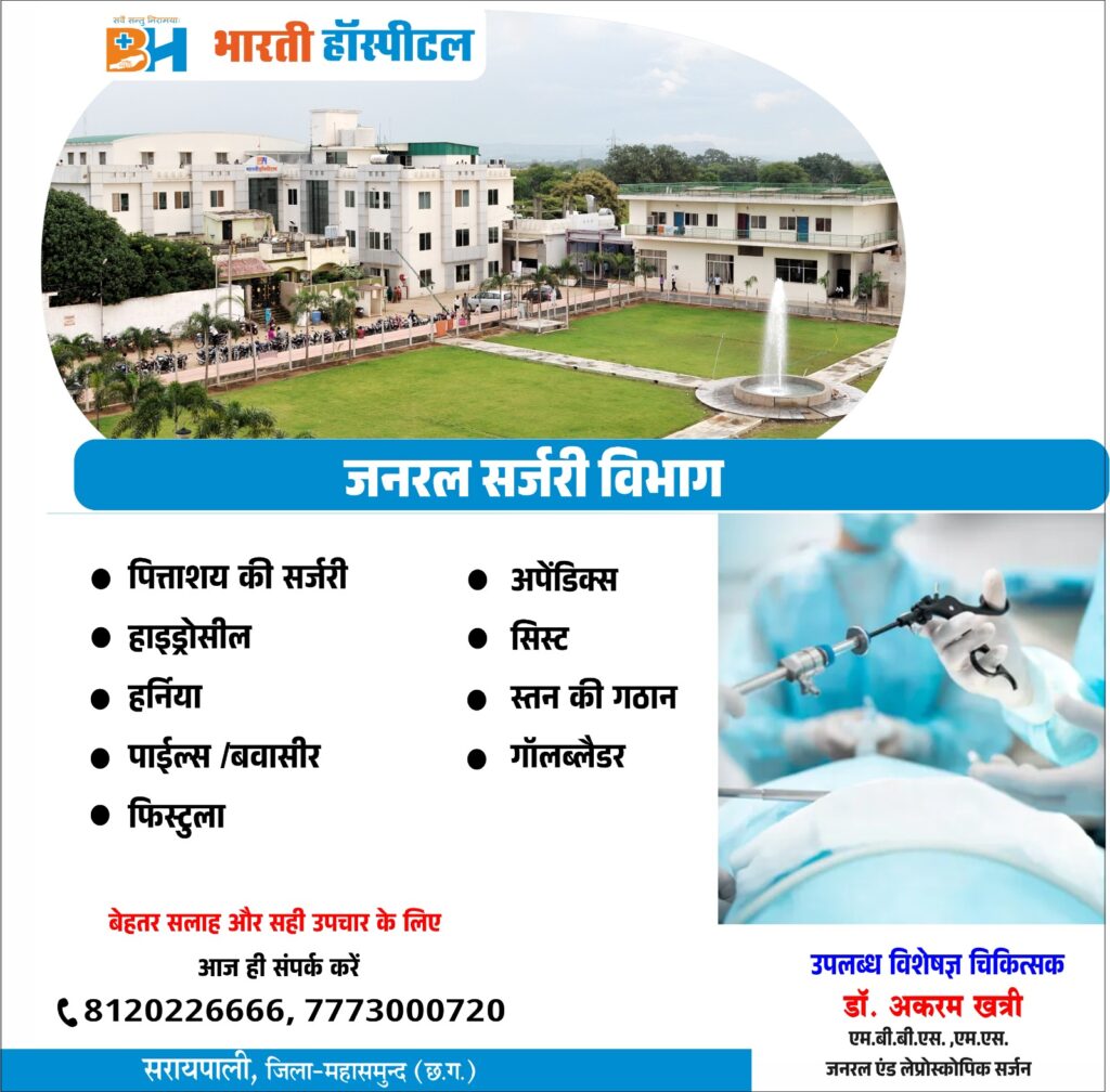 भारती हॉस्पीटल (8120226666, 7773000720सरायपाली, जिला-महासमुन्द (छ.ग.)