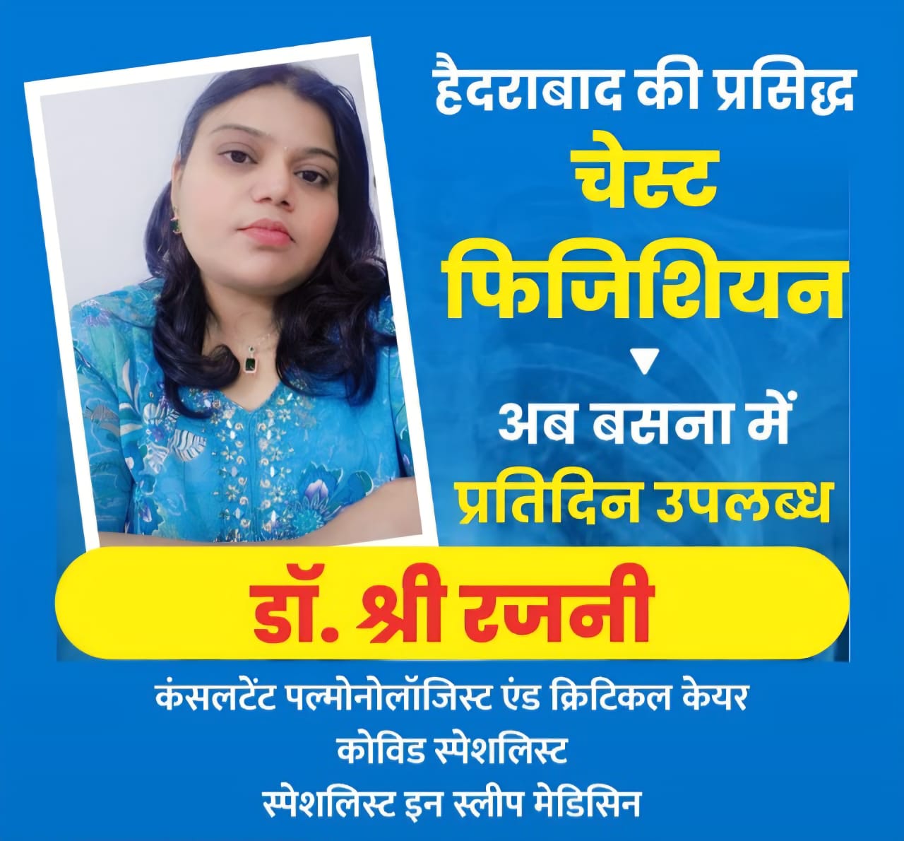 सरायपाली .ग्रामीण स्वास्थ्य सेवाओं को मजबूत करने की दिशा में एक महत्वपूर्ण कदम के तहत अग्रवाल नर्सिंग होम, बसना में 26 अक्टूबर को निःशुल्क छाती एवं श्वास रोग शिविर का आयोजन होगा। इस शिविर में हैदराबाद की प्रसिद्ध पल्मोनोलॉजिस्ट डॉ. रजनी (एमडी पल्मोनोलॉजी, डेक्कन मेडिकल कॉलेज, हैदराबाद) अपनी विशेषज्ञता साझा करेंगी। छह वर्षों से अधिक अनुभव वाली डॉ. रजनी न केवल चेस्ट फिजिशियन हैं, बल्कि क्रिटिकल केयर, आईसीयू और कोविड रोग प्रबंधन में भी निपुण हैं। शिविर के बाद वे प्रतिदिन नर्सिंग होम में उपलब्ध रहेंगी, जो स्थानीय मरीजों के लिए बड़ी राहत साबित होगा।