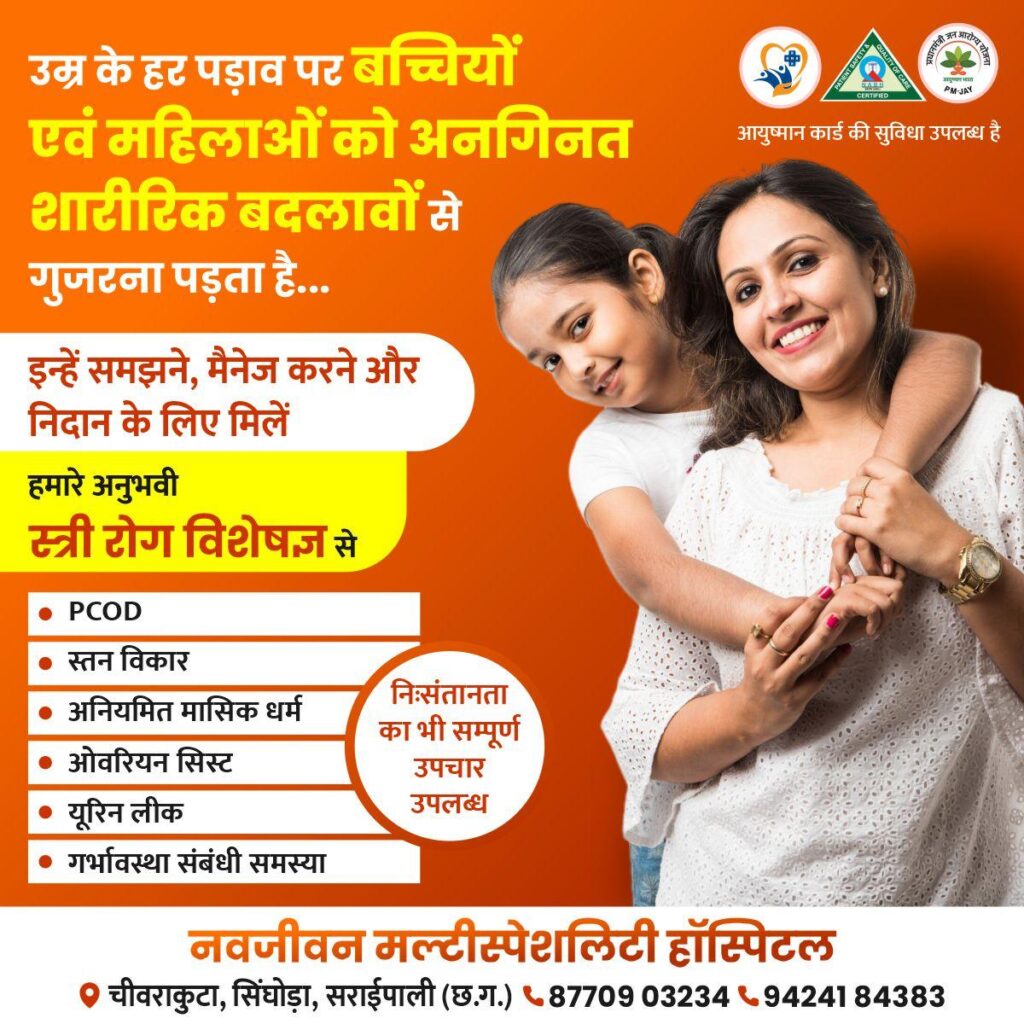 सरायपाली। नवजीवन मल्टीस्पेशलिटी हॉस्पिटल चिवराकुटा में लेजर एवं दूरबीन द्वारा ऑपरेशन कि सुविधा उपलब्ध है।और 10,000+ सर्जरी का अनुभव रखने वाले प्रसिद्ध जनरल एवं लैप्रोस्कोपिक सर्जन डॉ.जे.पी. बर्मन नवजीवन मल्टीस्पेशलिटी हॉस्पिटल में उपस्थित रहते हैं।