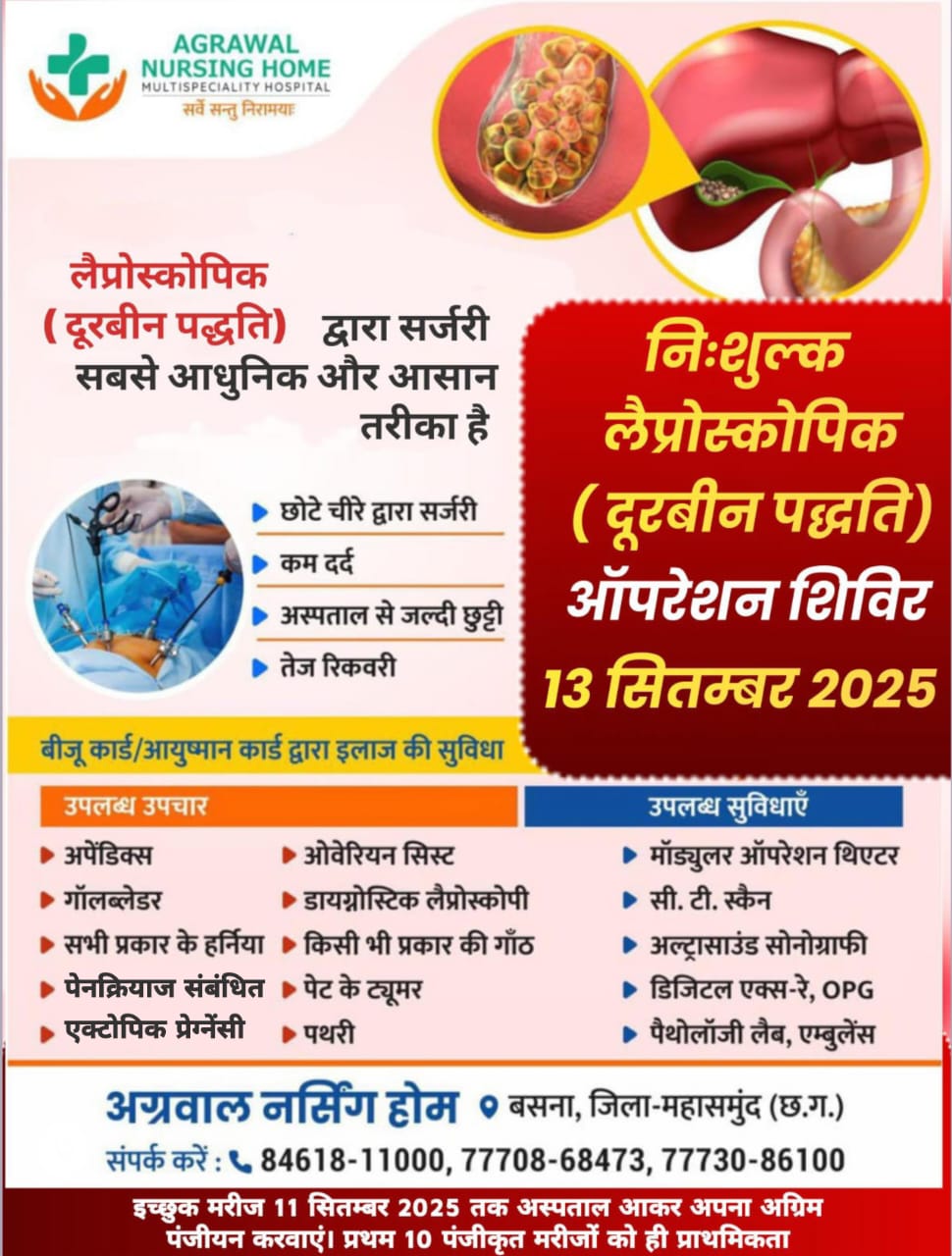 आज 04 सितम्बर को अग्रवाल नर्सिंग होम, बसना के विशेषज्ञ अब पिथौरा में ,सेत कुँवर नर्सिंग होम राजा सेवैया (टप्पा),में उपलब्ध रहेंगे