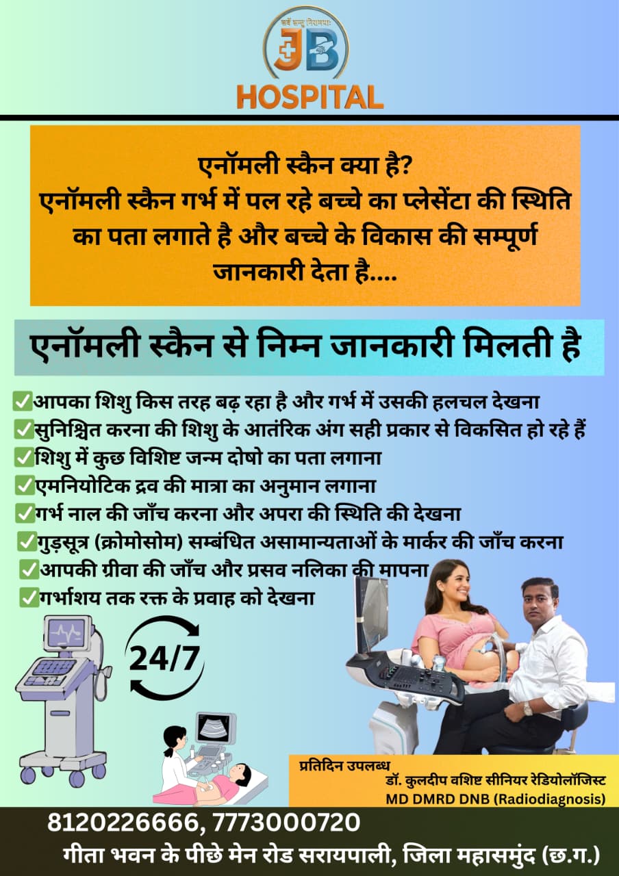 एनॉमली स्कैन क्या है? पूर्ण जानकारी एवं ईलाज प्रतिदिन डॉ कुलदीप वशिष्ठ द्वारा JB हॉस्पिटल सरायपाली में